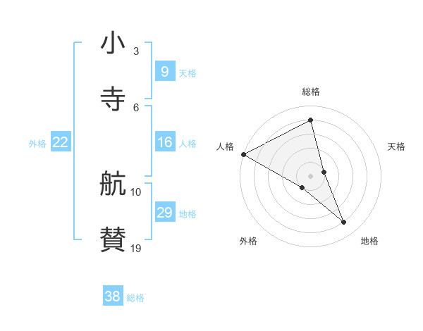 小寺 航賛さんの総格は38画の4点!