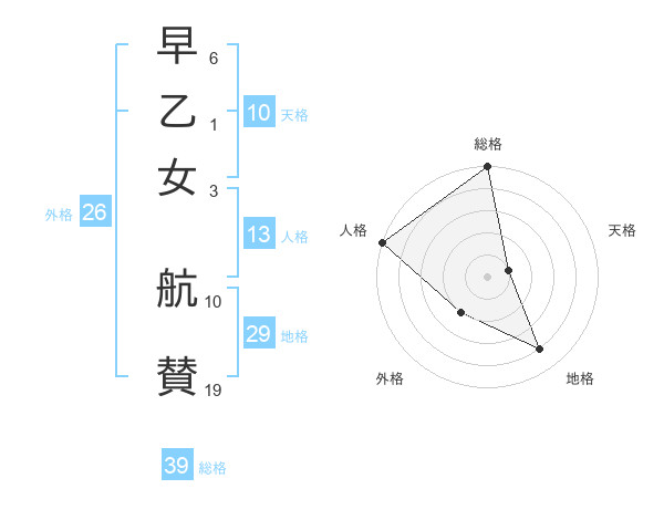早乙女 航賛さんの総格は39画の5点!