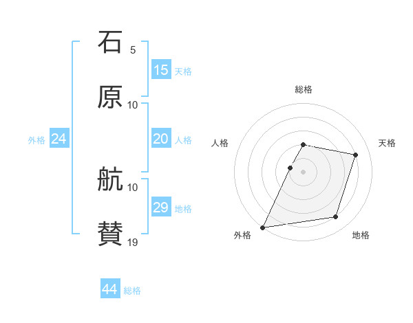 石原 航賛さんを姓名の画数から五運を鑑定
