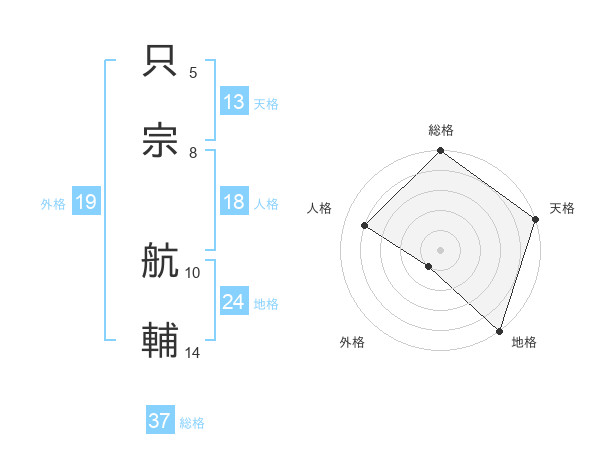 只宗 航輔さんを姓名の画数から五運を鑑定