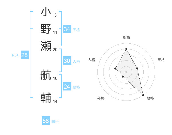 小野瀬 航輔さんを姓名の画数から五運を鑑定