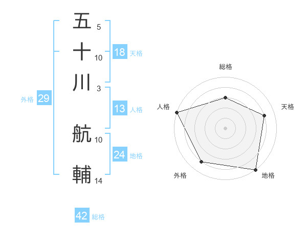 五十川 航輔さんを姓名の画数から五運を鑑定