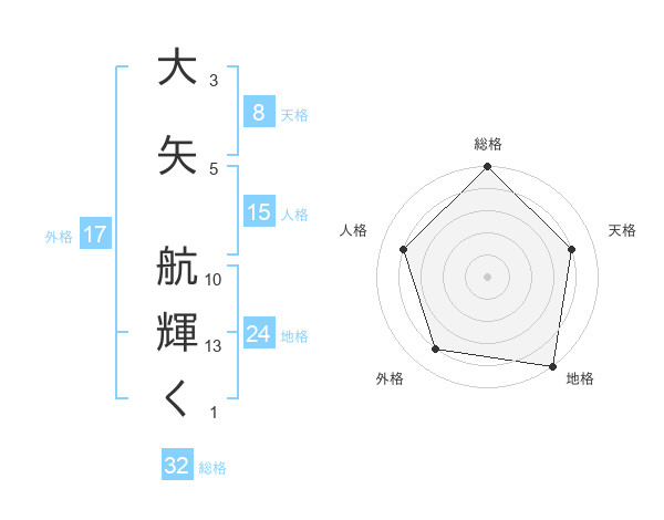大矢 航輝くさんの総格は32画の5点!