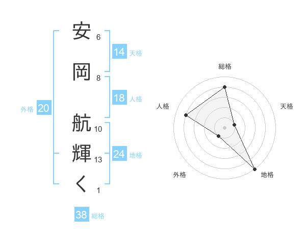 安岡 航輝くさんの総格は38画の4点!