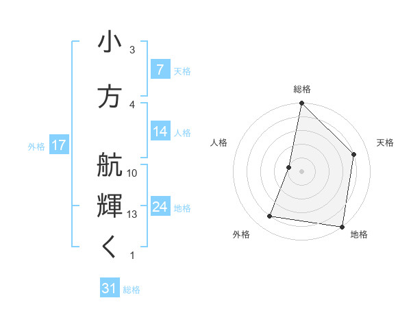 小方 航輝くさんを姓名の画数から五運を鑑定