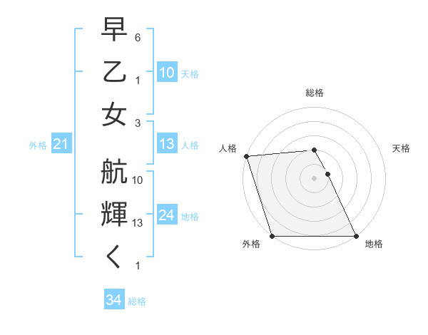 早乙女 航輝くさんを姓名の画数から五運を鑑定