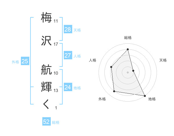 梅沢 航輝くさんを姓名の画数から五運を鑑定