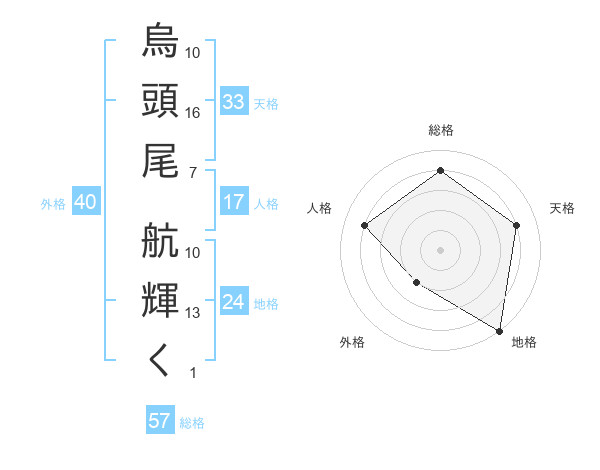 烏頭尾 航輝くさんを姓名の画数から五運を鑑定