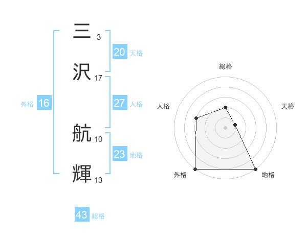 三沢 航輝さんを姓名の画数から五運を鑑定