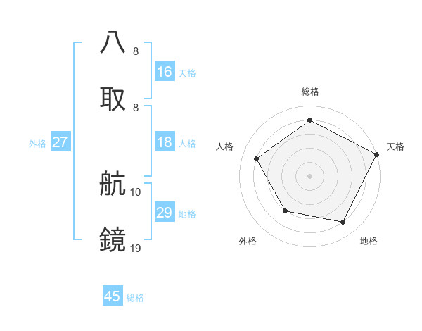 八取 航鏡さんの総格は45画の4点!