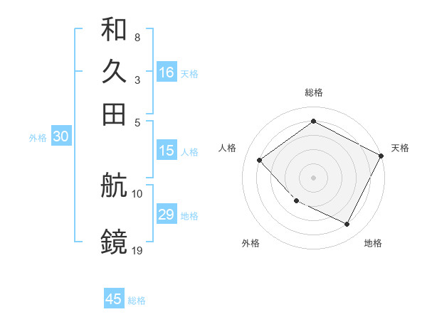 和久田 航鏡さんの総格は45画の4点!