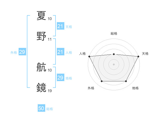 夏野 航鏡さんを姓名の画数から五運を鑑定