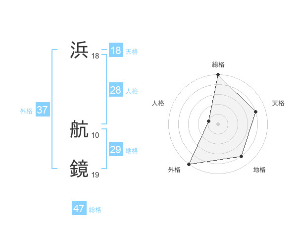 浜 航鏡さんの総格は47画の5点!