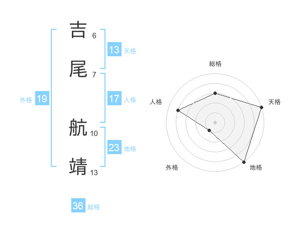 吉尾 航靖さんを姓名の画数から五運を鑑定