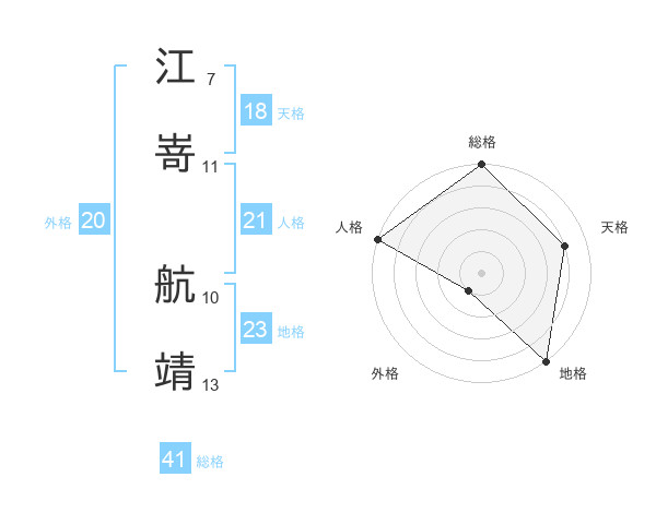 江嵜 航靖さんを姓名の画数から五運を鑑定