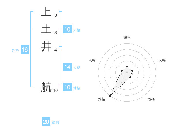 上土井 航さんの総格は20画の1点!