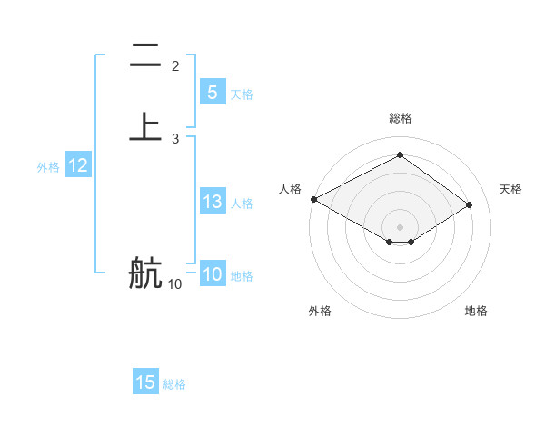 二上 航さんの天格は5画の4点!