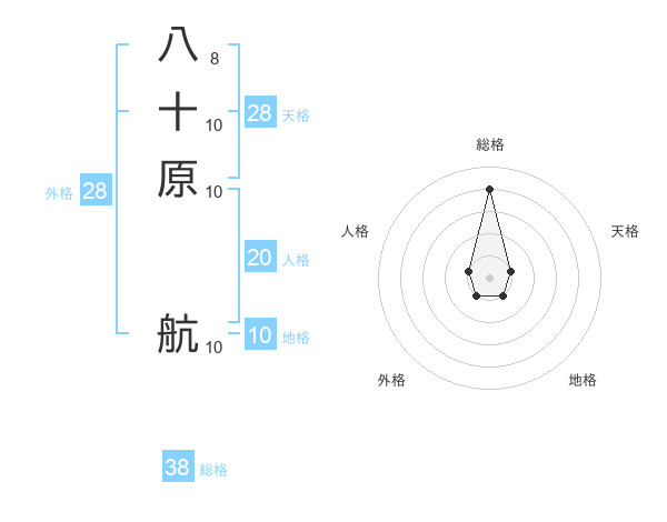 八十原 航さんの総格は38画の4点!