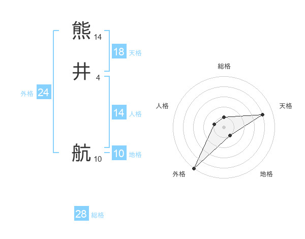 熊井 航さんの総格は28画の1点!