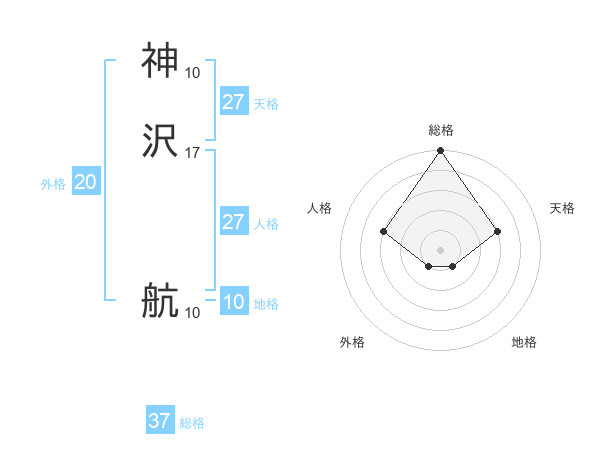 神沢 航さんの総格は37画の5点!