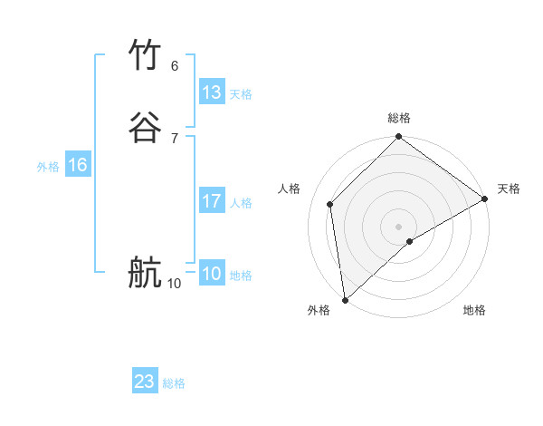 竹谷 航さんの総格は23画の5点!