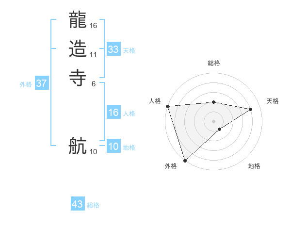 龍造寺 航さんの外格は37画の5点!