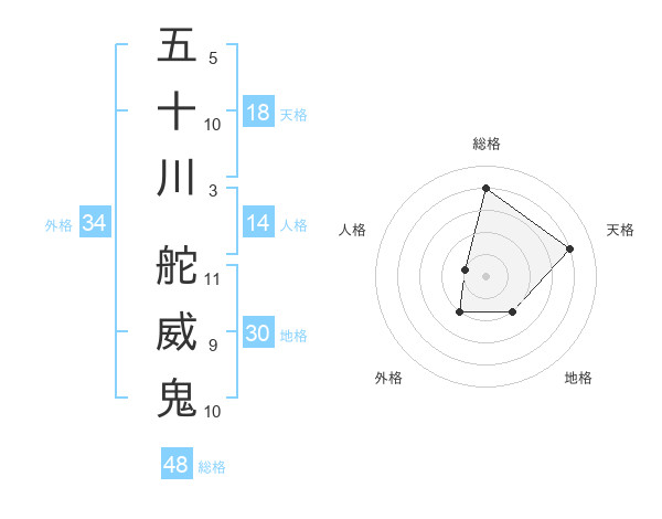 五十川 舵威鬼さんを姓名の画数から五運を鑑定