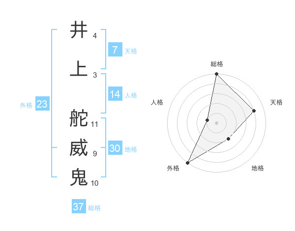井上 舵威鬼さんの総格は37画の5点!