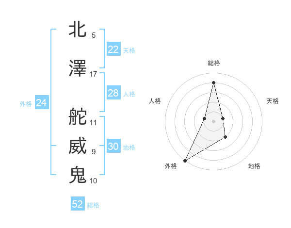 北澤 舵威鬼さんの外格は24画の5点!