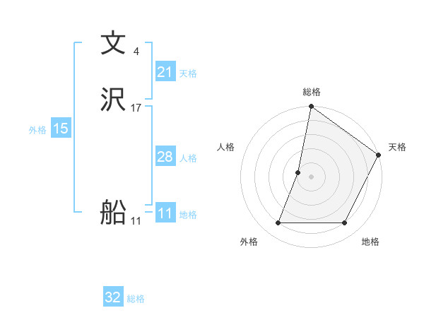 文沢 船さんの総格は32画の5点!