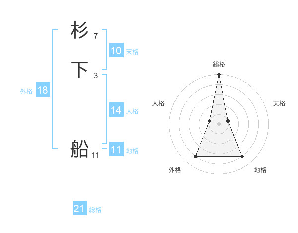 杉下 船さんの総格は21画の5点!