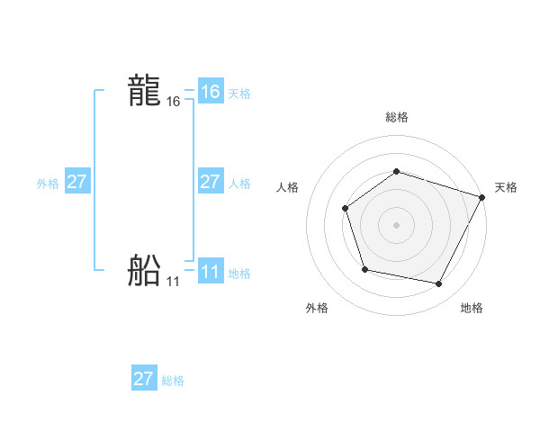 龍 船さんの総格は27画の3点!