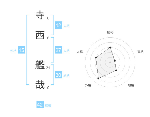 寺西 艦哉さんの総格は42画の3点!