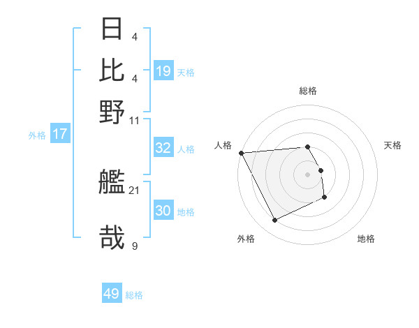 日比野 艦哉さんを姓名の画数から五運を鑑定