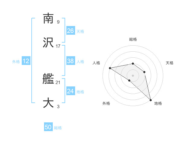 南沢 艦大さんの総格は50画の2点!
