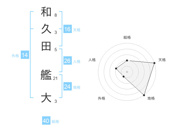 和久田 艦大さんを姓名の画数から五運を鑑定