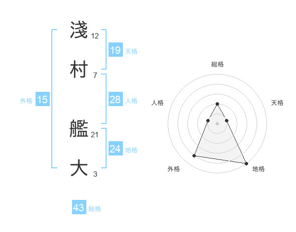 淺村 艦大さんの地格は24画の5点!