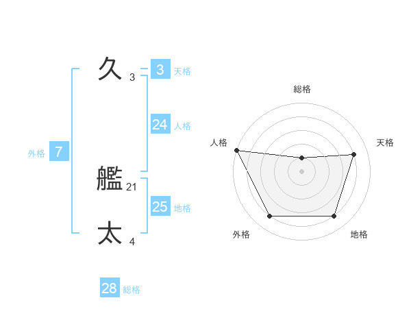 久 艦太さんの総格は28画の1点!