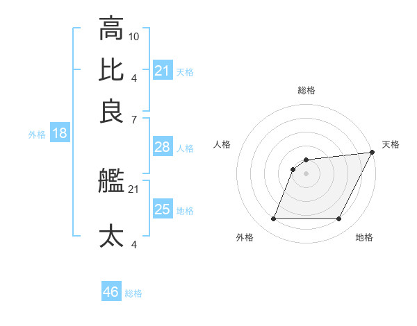 高比良 艦太さんの天格は21画の5点!