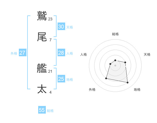 鷲尾 艦太さんの地格は25画の4点!