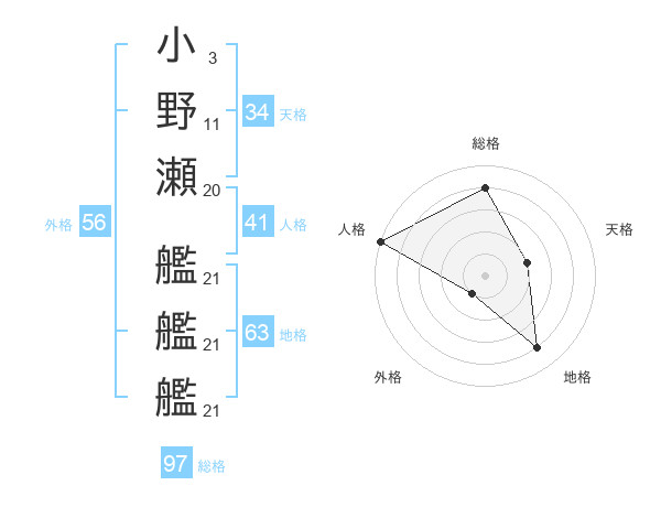 小野瀬 艦艦艦さんの総格は97画の4点!