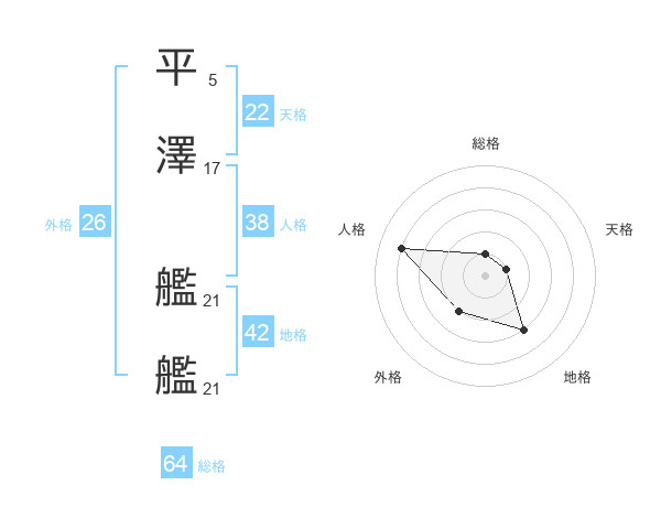平澤 艦艦さんを姓名の画数から五運を鑑定