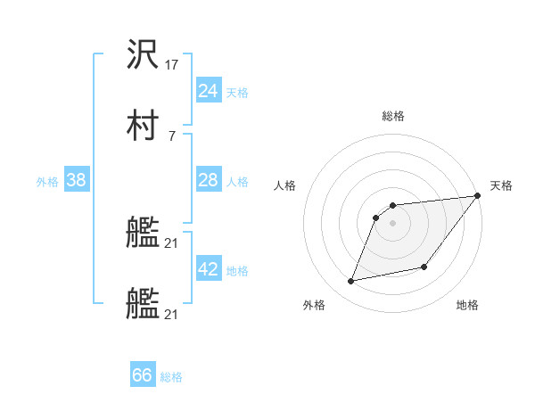 沢村 艦艦さんを姓名の画数から五運を鑑定