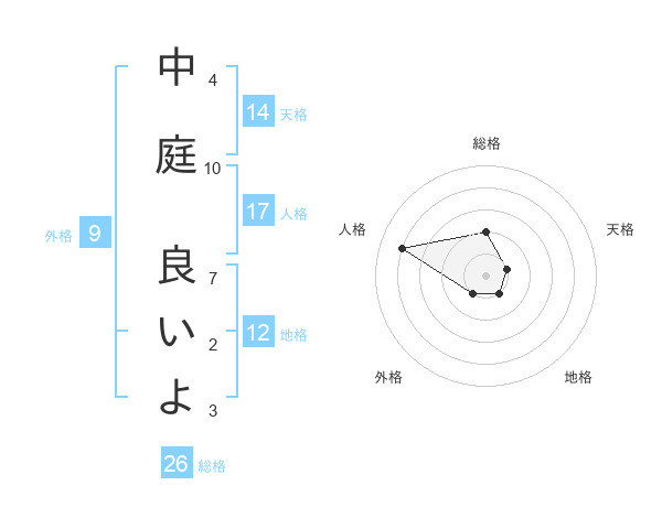 中庭 良いよさんを姓名の画数から五運を鑑定