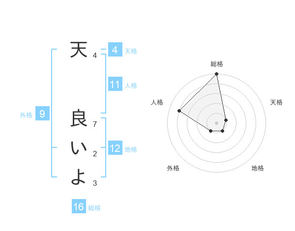 天 良いよさんの総格は16画の5点!