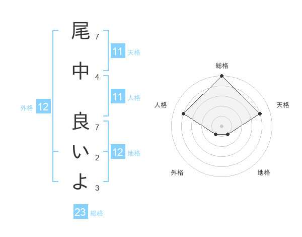 尾中 良いよさんを姓名の画数から五運を鑑定
