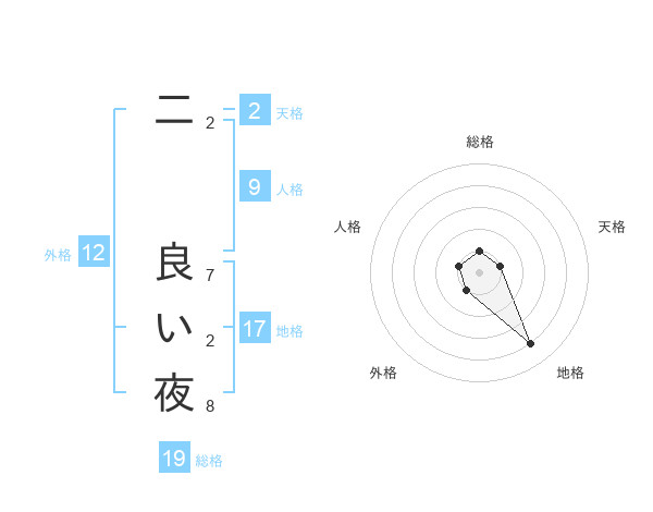 二 良い夜さんの地格は17画の4点!