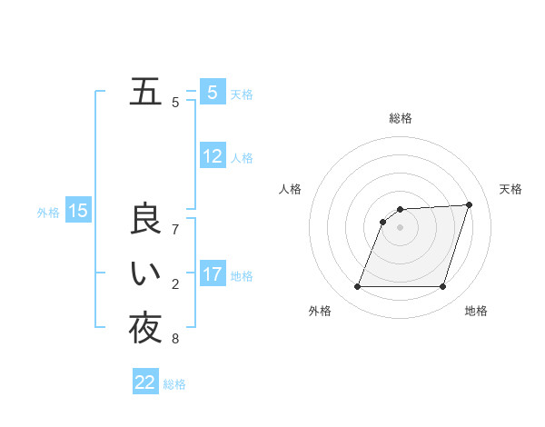 五 良い夜さんの総格は22画の1点!