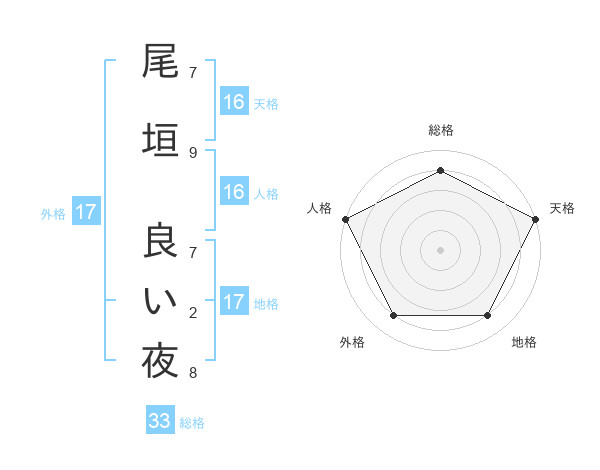尾垣 良い夜さんの外格は17画の4点!