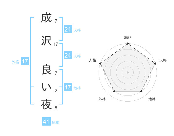 成沢 良い夜さんの外格は17画の4点!